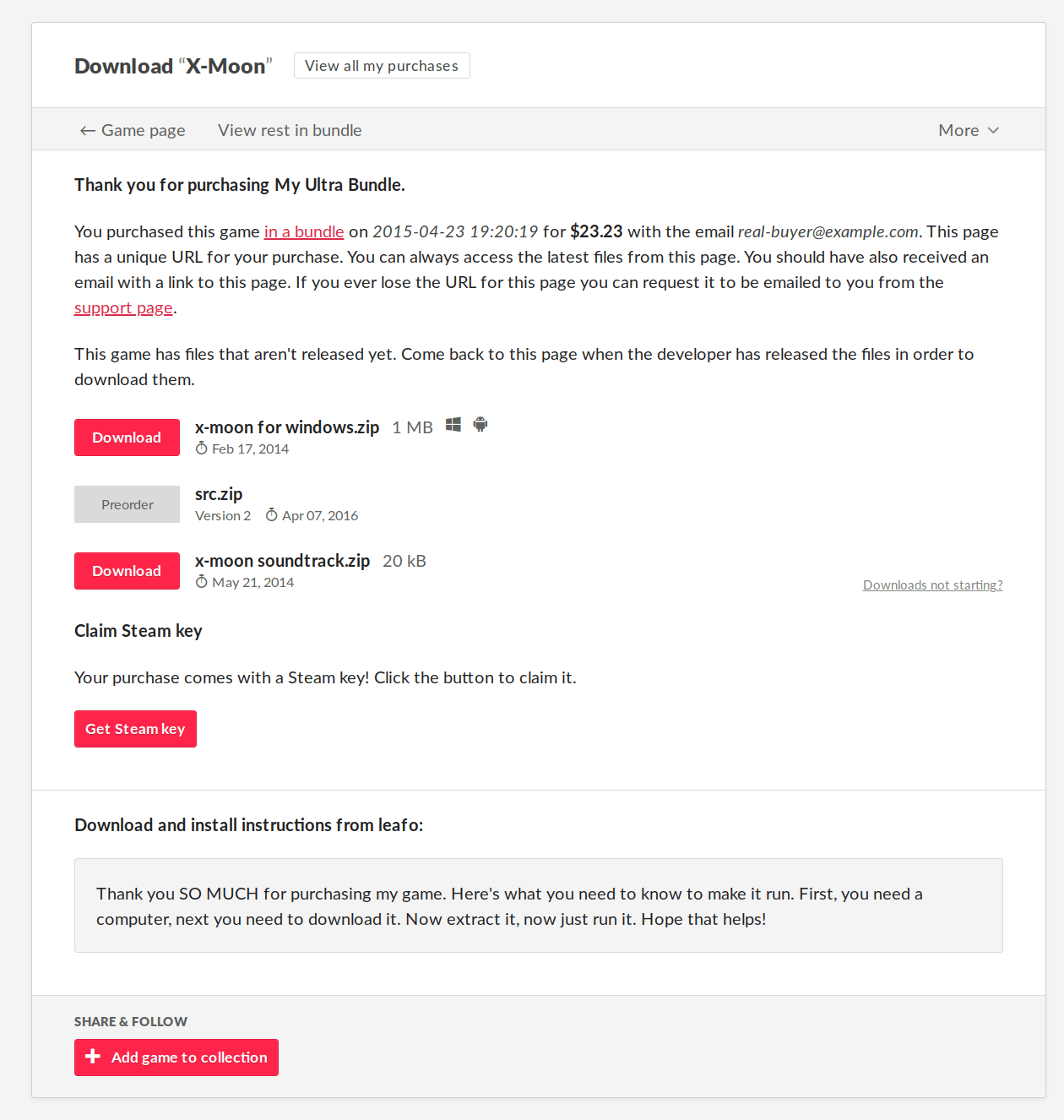 After purchasing a game, the buyer will also receive an email receipt containing instructions on how to access their purchase.