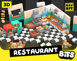 Low poly 3D cooking and food game assets for building kitchen and restaurant interiors