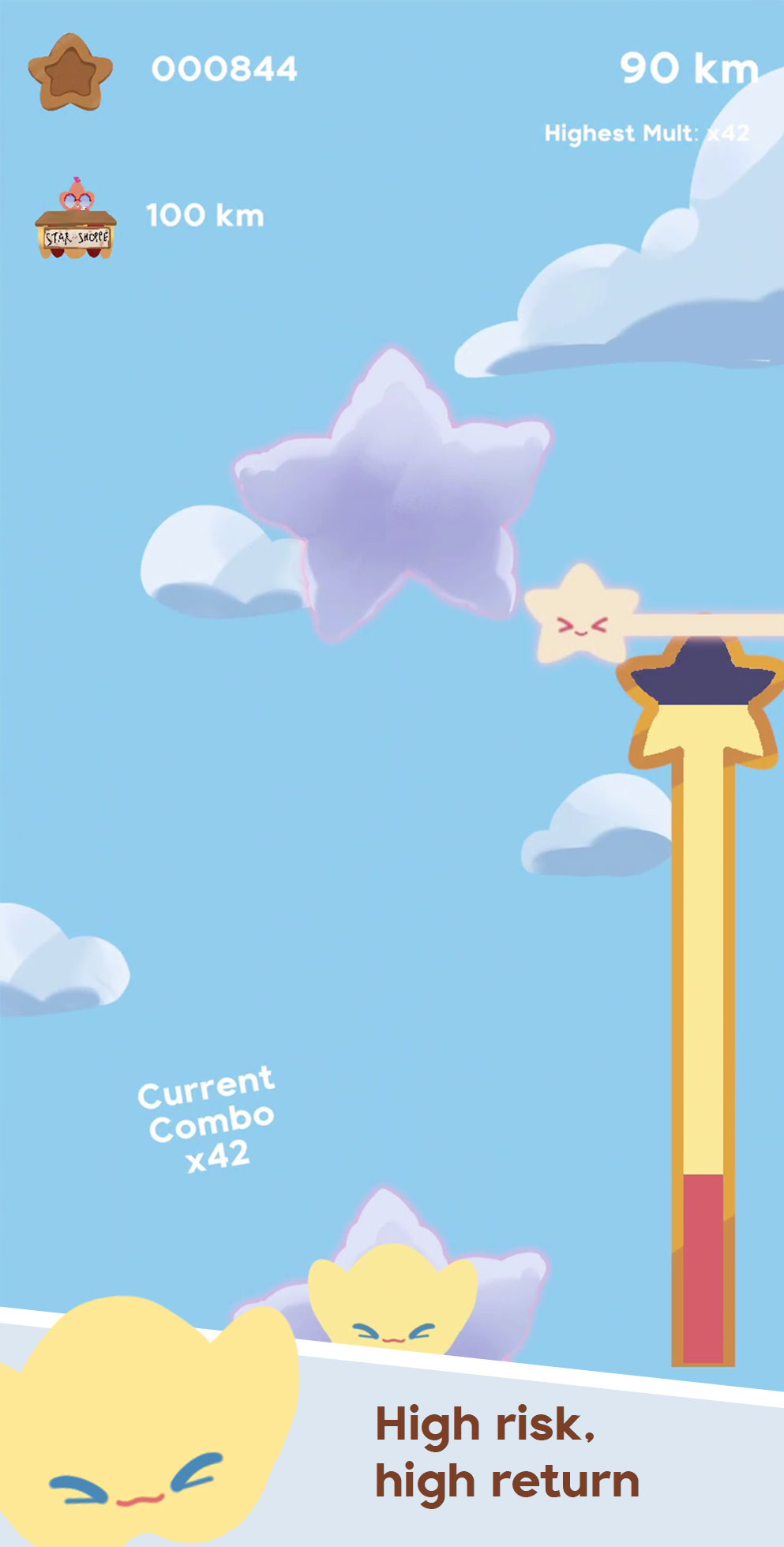 Risk your run by triggering at the very last second for better bonuses. You can go the safe route but you won't make it far. Miss the trigger and you lose.