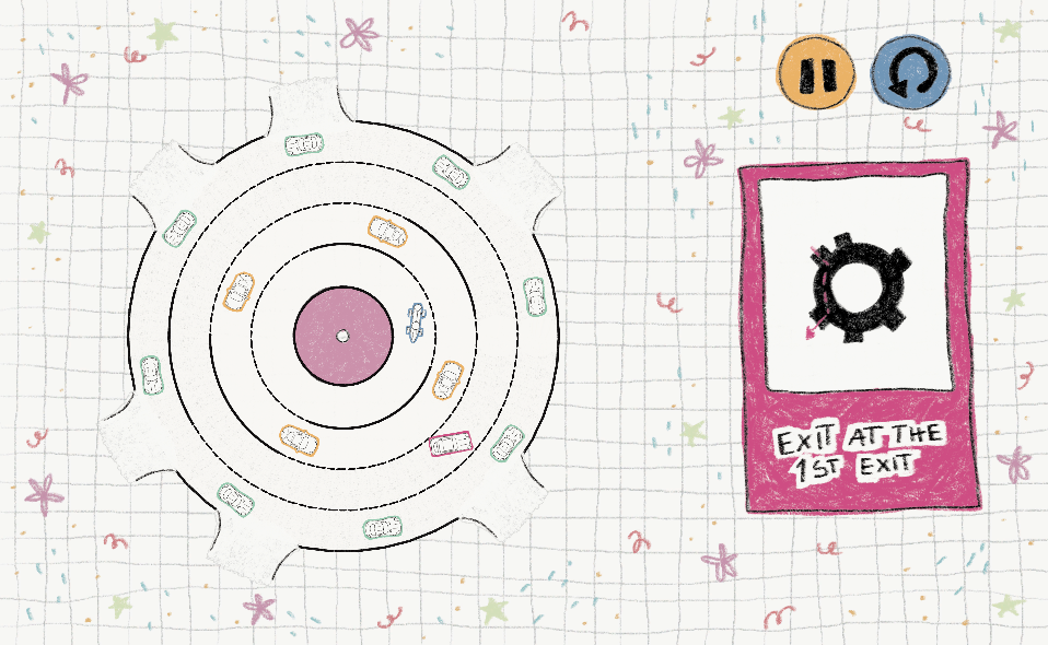 I liked it a lot. Really original concept, the art style was super cute, and the game felt very polished. In the later levels, I struggled a bit to read which exit I needed while my car was already crashing into another one. A 'ready' button or something similar would’ve helped a lot. Otherwise, really nice game!