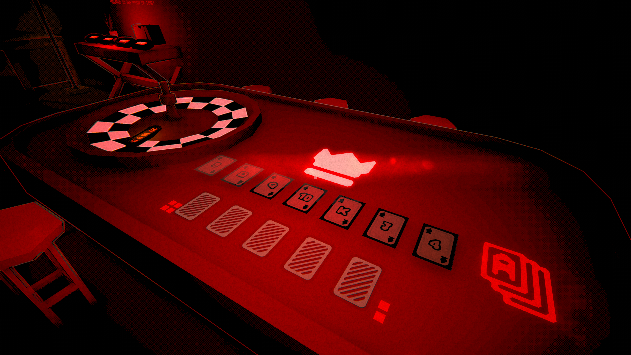 i spent so much time thinking the gambling part came fourth because of the 'go forth' clue, but i'm glad the game just decided im too stupid and gave me the answer eventually anyway 😭Killer vibes, loved the aesthetic and the music was such a jam - it would've been easy to spin this a more horror direction but I'm glad you went with the frantic funky beat instead. I solved all the puzzles and got all the symbols lit up but couldn't figure out how to end it. Great job!