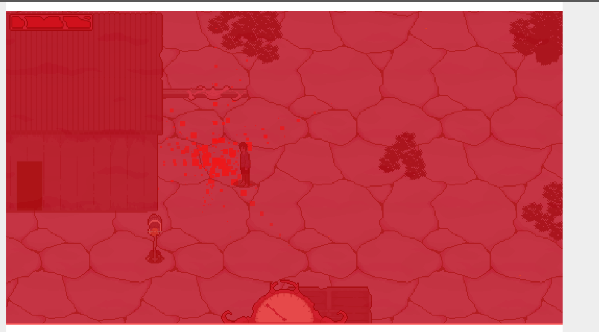 Thank you so much for playing and for the feedback! I’m glad you enjoyed the experience. Which red overlay are you referring to in the last level specifically? Is it the blood from the enemies on the ground?