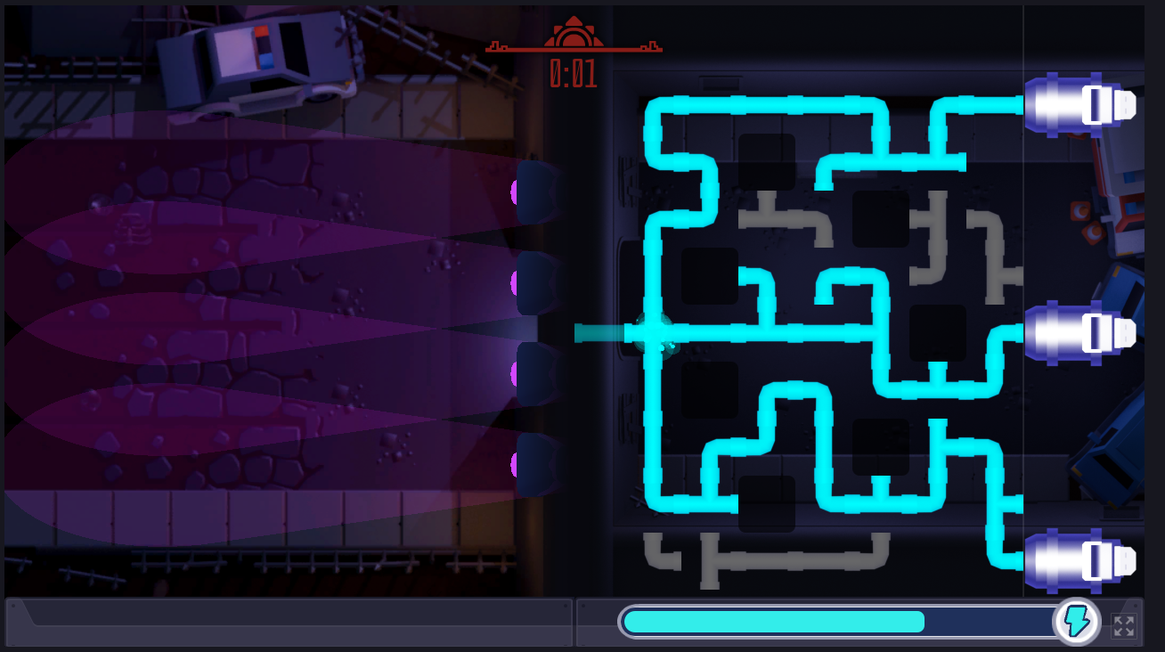 We incorporated the theme in two ways. The player has to keep the power in their base on, and power through the night.