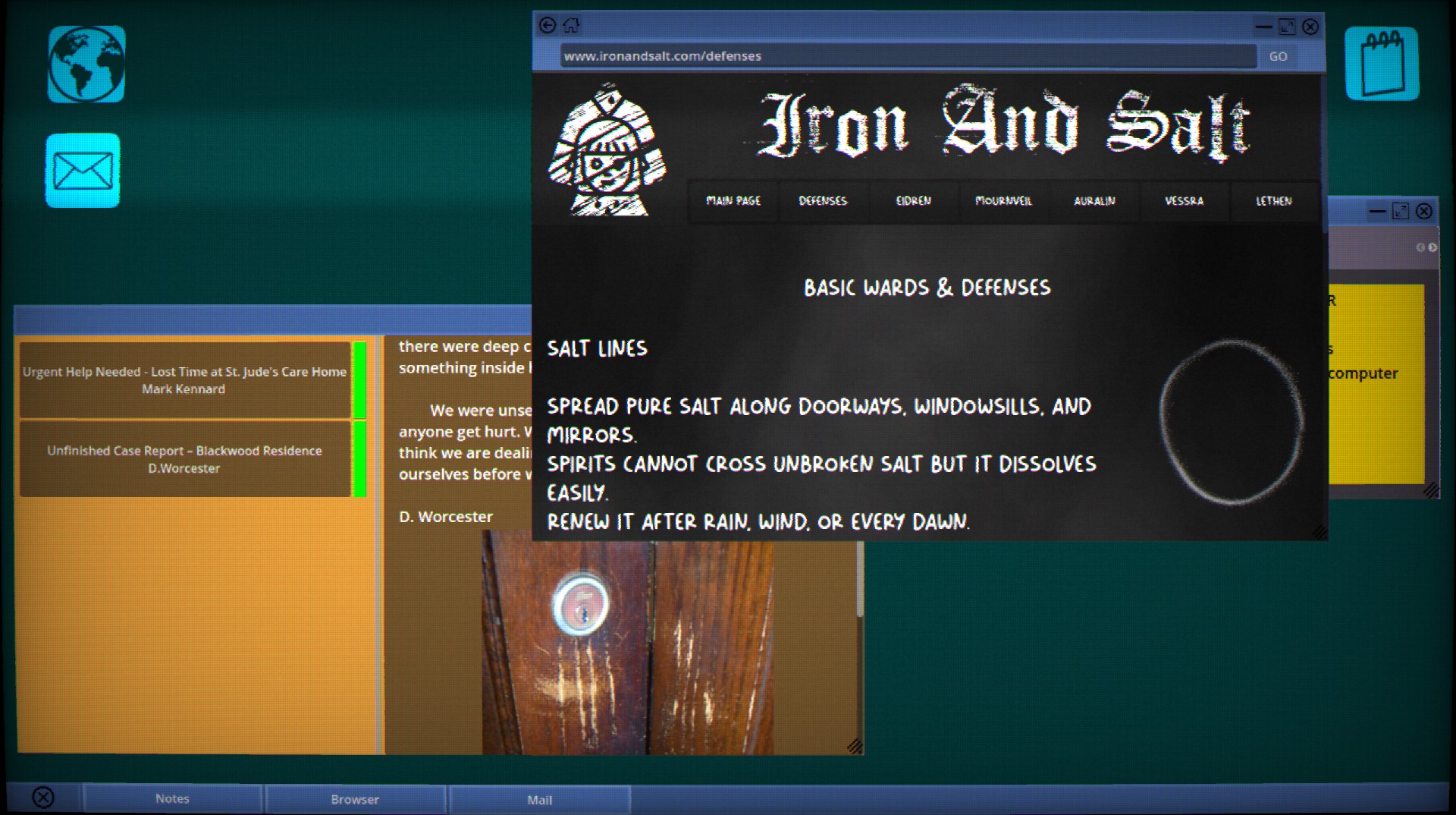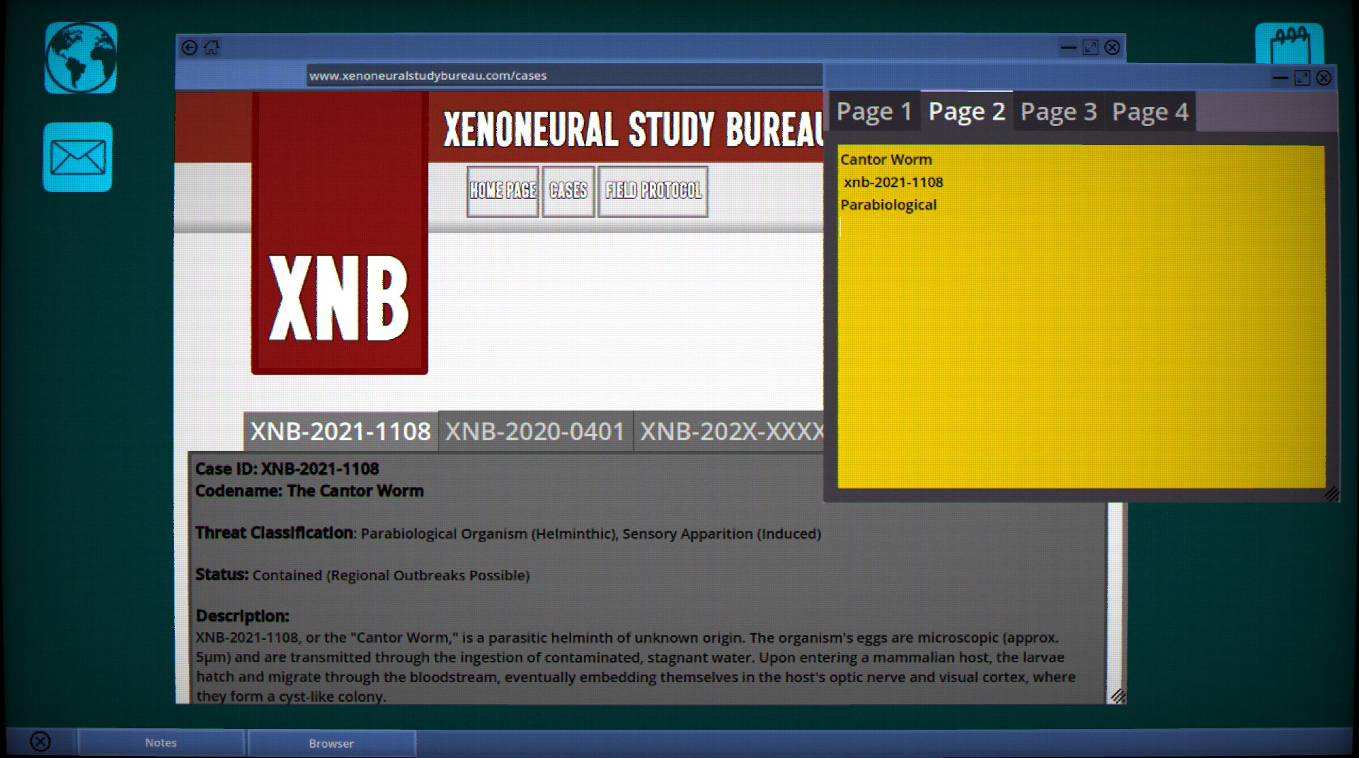 I do wish the layout of the desktop was a little different than that of a normal person, since you are a member of this secretive SCP foundation cult. Something like a whole procedure that you need to perform when turning on the computer or even turning it off, like signing into their own private vpn to unlock their supernatural detective intranet. I think it would add to this air of secrecy. Maybe a daily rotating password that you get sent in your private mail, to log into the intranet. Maybe another app that contains regular reports from tv, newspapers and such with comments from your SCP foundation cult specialists.