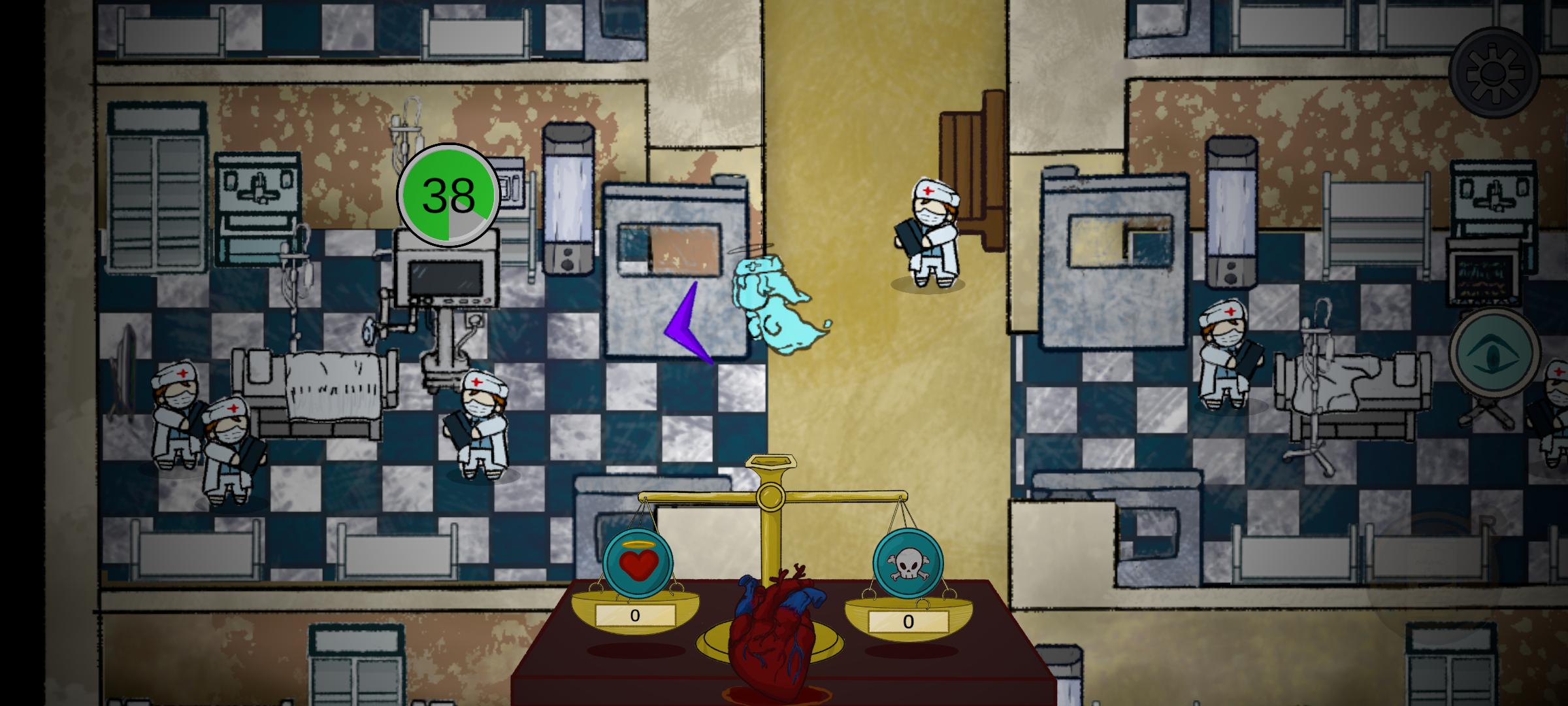 Omg I love the artwork in this game, the thumbnail and ghost animations especially. I love the little lore notes for patients, and the nurse's own thoughts as she goes around fixing machines. I will say, the bar to win is a little high- time consuming to get 40 lives saved. Maybe I just feel this way because it starts slow. I love how all the doctors throw up their hands freaking out when a machine breaks lol, and the sigh of relief when I fix it <3. I'm impatient and it's late so I probably wont get to an ending but still really liked this game. Great work!