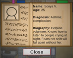 Story and context, very nice. I liked the character of the ghost Nurse. The fact they saw and understood the fact they worked themselves to death, yet failed to take the hint, and saw that as no reason to stop working, good stuff. Being able to read up on the people you are helping was a nice way to make it feel a tad more real.