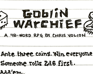 Steal goblins! Destroy your rivals! Become the Goblin Warchief! A fireside dice game played by resting adventurers.