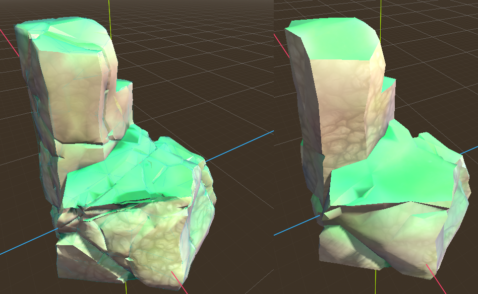 In the web and fallback version for example I am using entirely the low poly version seen on the right, the original uses the left model for the close area where you can walk on, and the low poly for objects in the environment
