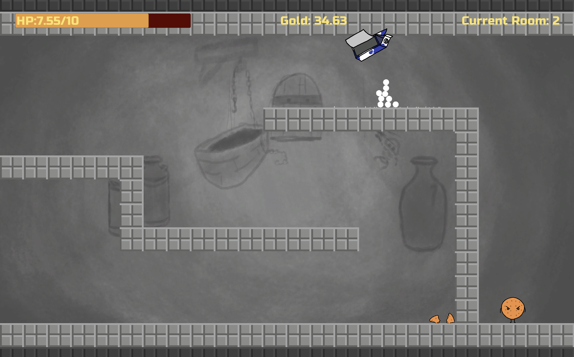 I really liked the music, the idea of hitpoints also being bullets, and how you can collect them again after shooting to regain both health and ammo. The enemies designed around the milk theme were creative too, and I enjoyed the variety.