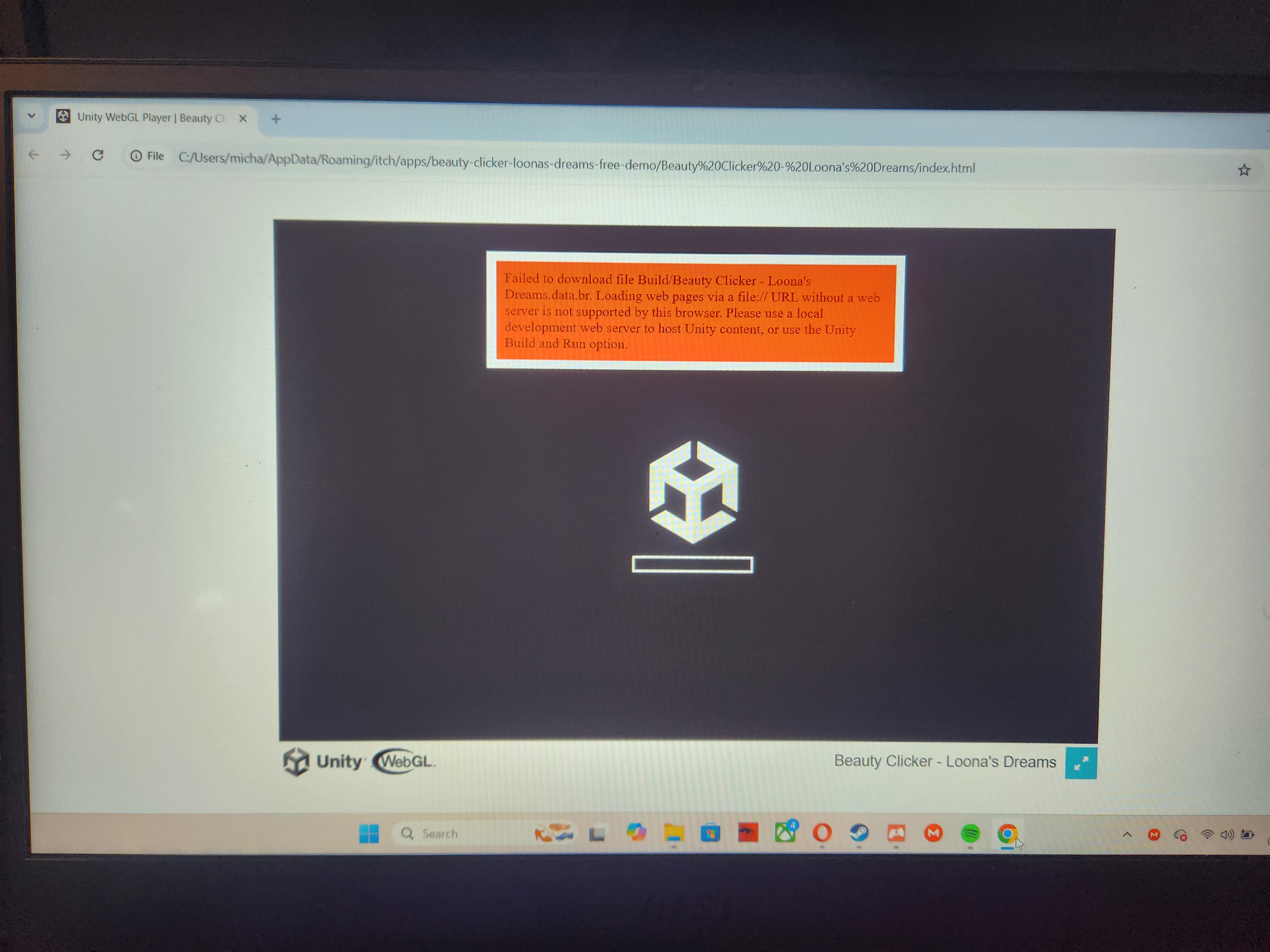 Failed to download file Build/Beauty Clicker - Loona's Dreams.data.br. Loading web pages via a file:// URL without a web server is not supported by this browser. Please use a local development web server to host Unity content, or use the Unity Build and Run option.