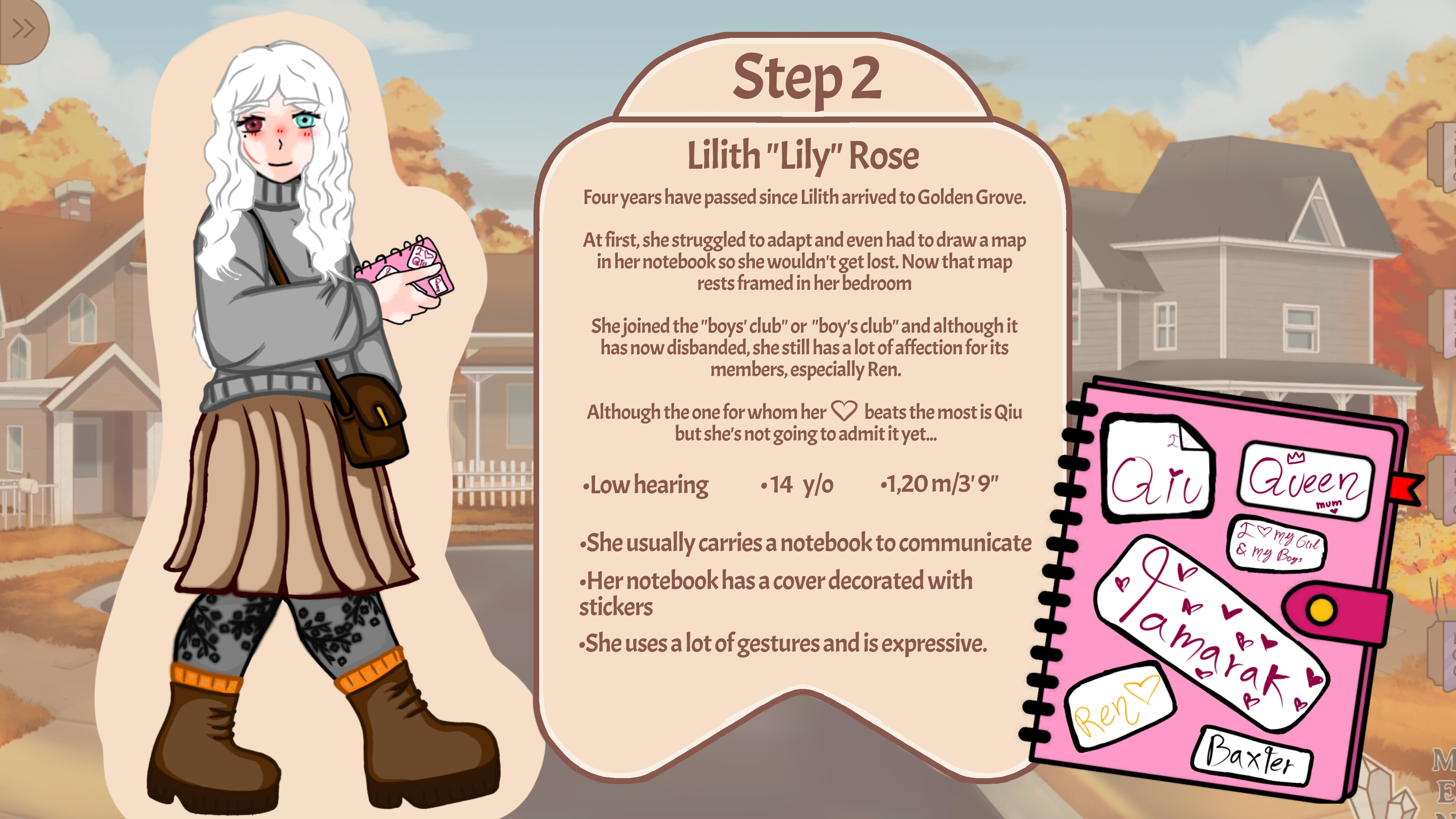 I love that in Step 1 when you're introducing yourself, depending on what you decide, you can grab Qiu's notebook and write about what happened to you with the paper airplane in it to explain it to him.