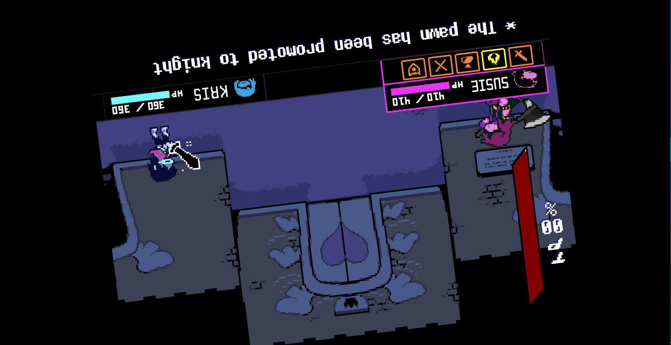 well, I retried the fight after being defeated while kris used the PureCrystal. The whole menu and the fight like the image above stayed at the same position where I died. Is this intended??
