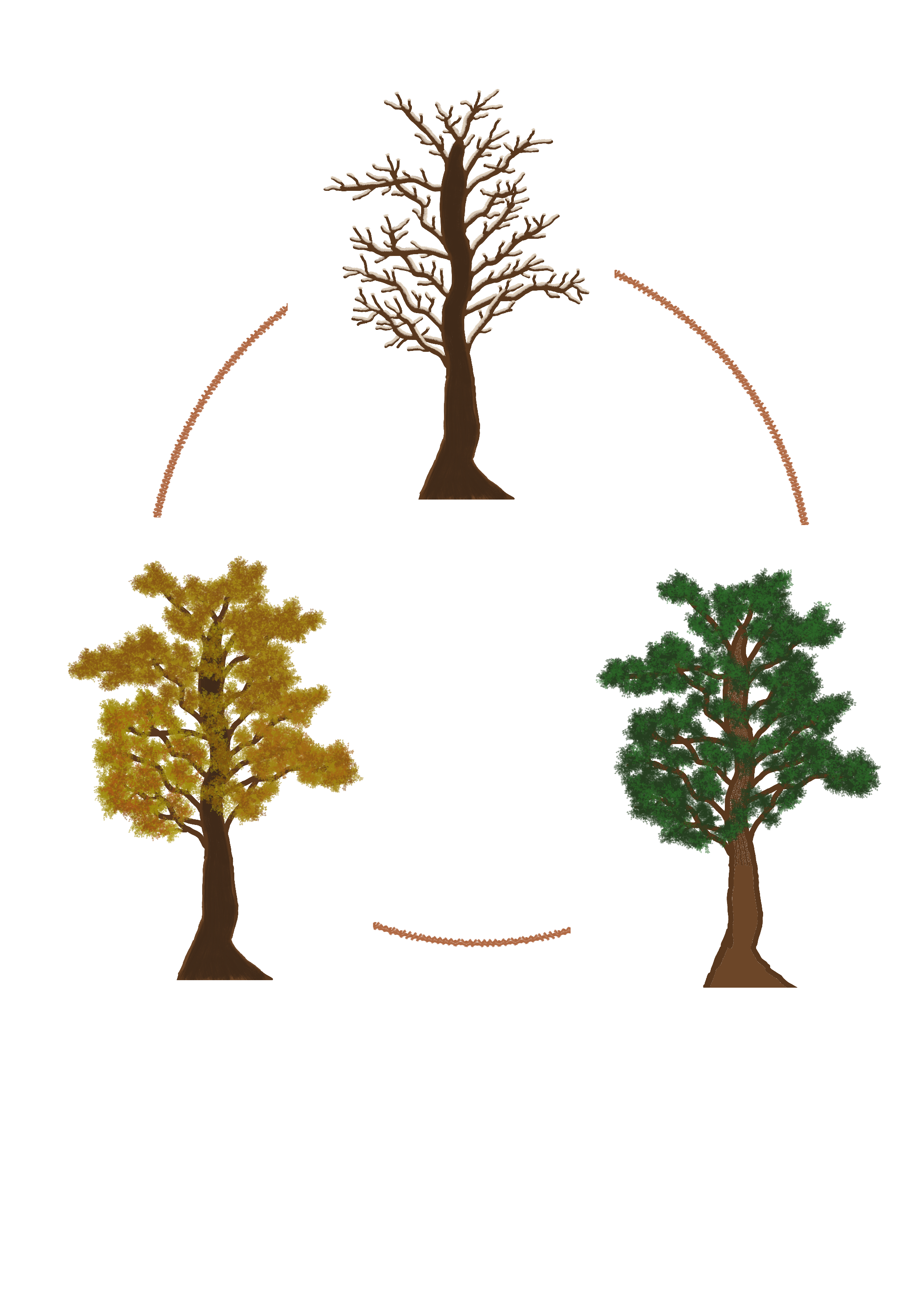 My thinking is - circular is similar to cyclical. One of the more famous cycles is the seasons. It is a standard way to represent the changes of seasons using trees. And because I already put the effort into drawing several versions of a tree I decided to use that for the topic.