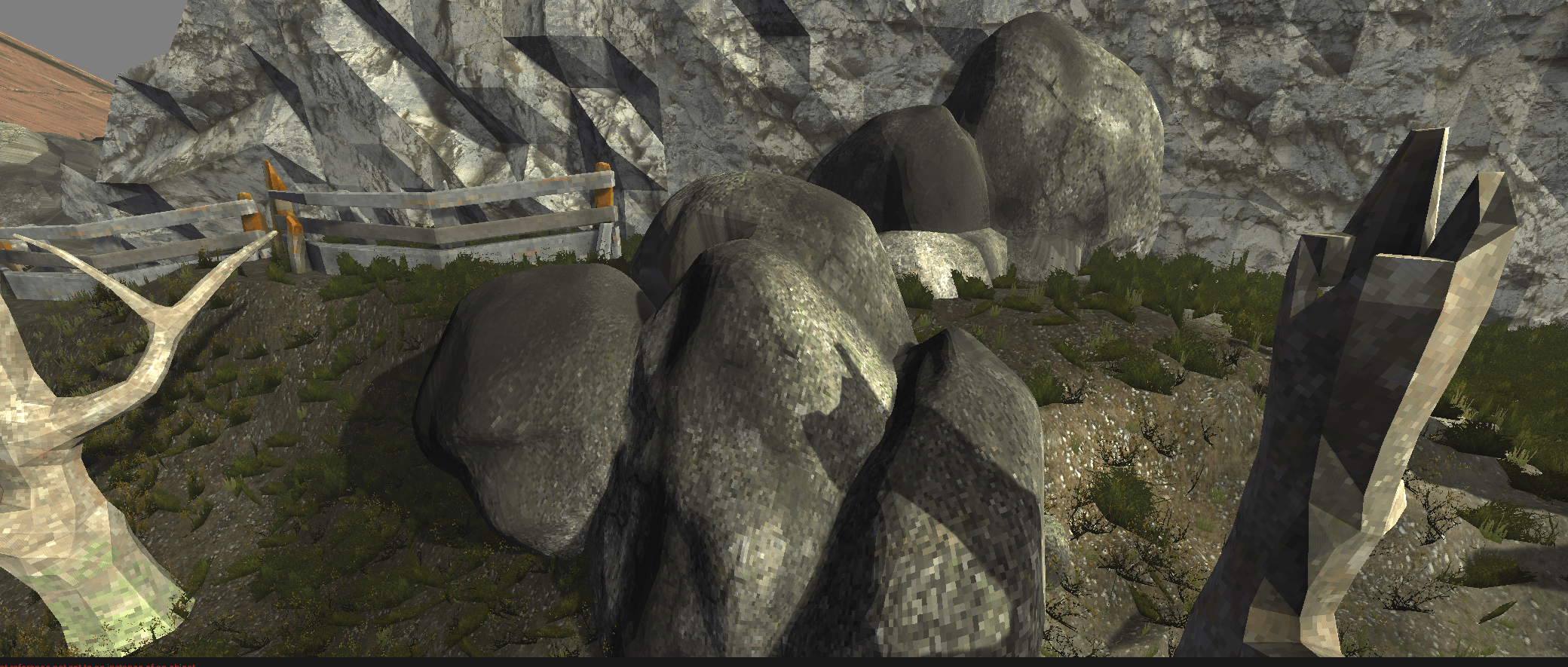 Shading artefacts on some meshes - the current normal and tangent setup creates overly smooth shading that clashes with the low-poly PSX look. A few props pick up weird light gradients and specular streaks. To fix: simplify the shading by hardening vertex normals, cleaning up tangents and reducing normal map influence so lighting reads flatter and more consistent across assets.