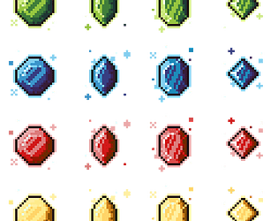Pixel Art Gems, 32x32px, Pngs in Zip file 4 colors (Green/Blue/Red/Yellow)