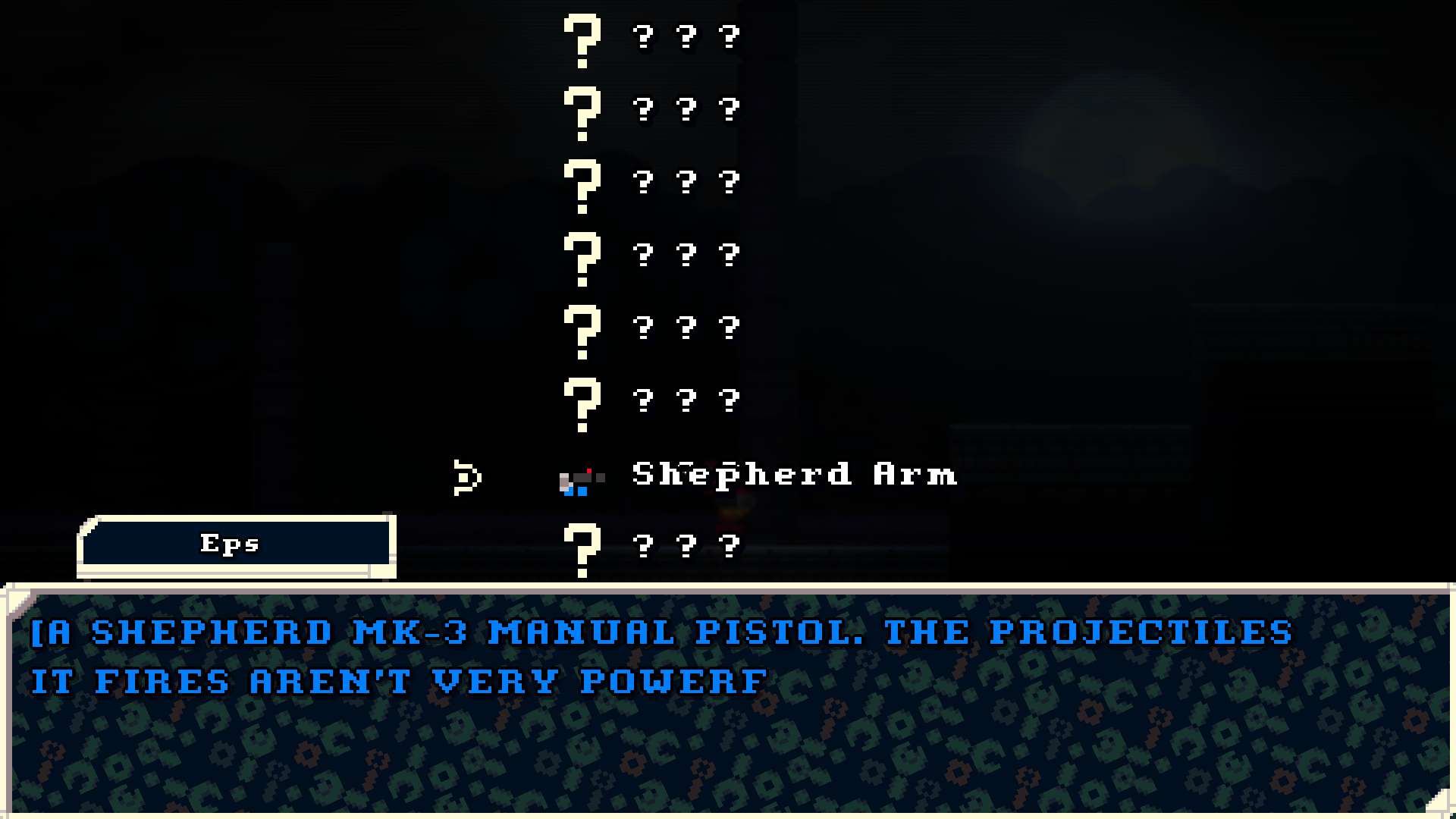 In the equipment database, the names of new equipment are displayed ON TOP of the question marks instead of replacing them.