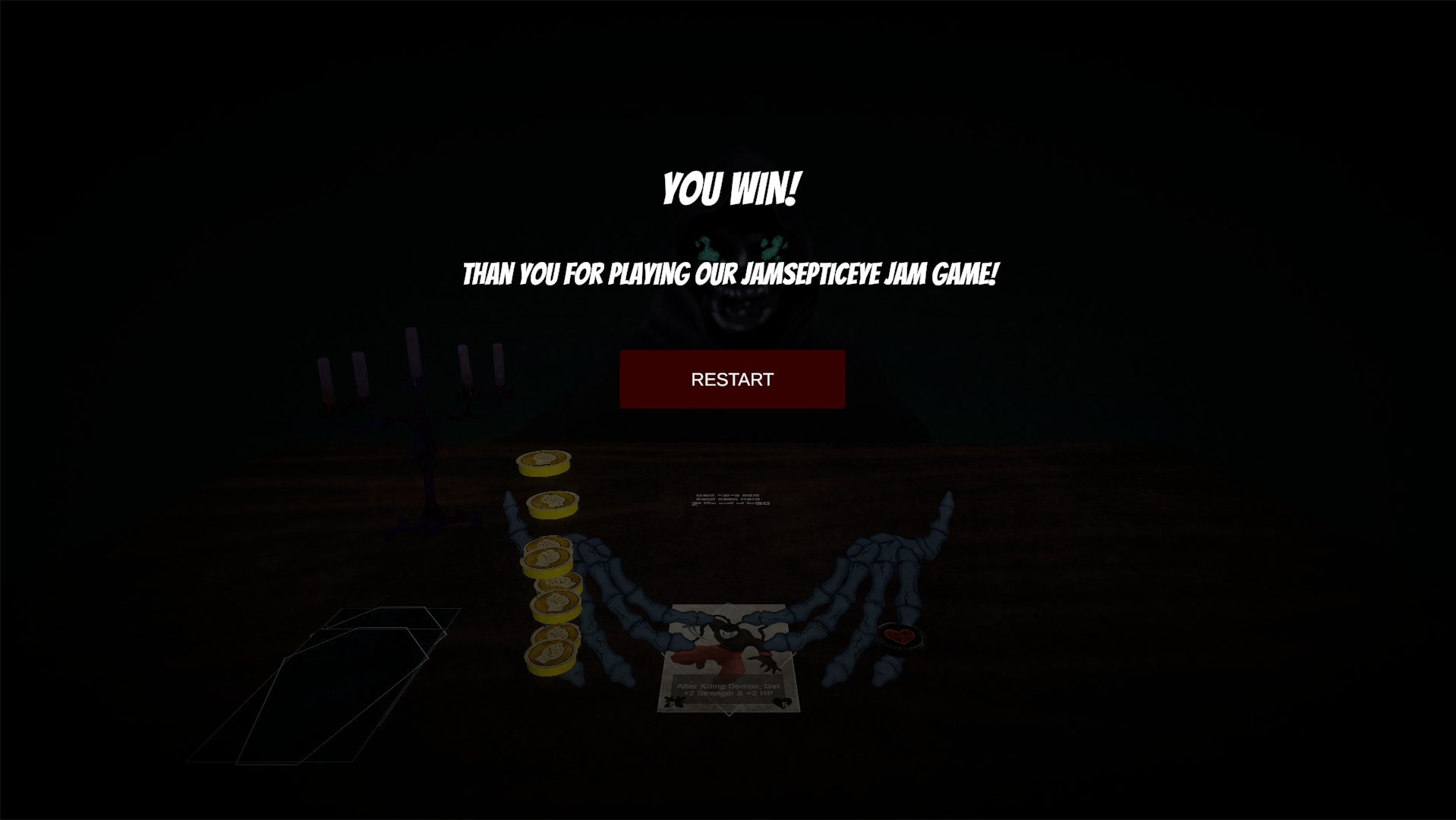 I love the humour in your game! It's written very well. (ie. "It's not the size of the scythe that matters" and Diego as a whole)! But Melissa's segment was very touching. I too wish there were a bit more sound stuff, but thats just nitpicky. Very very good story and game for such a short amount of time! It deserves to be seen more!