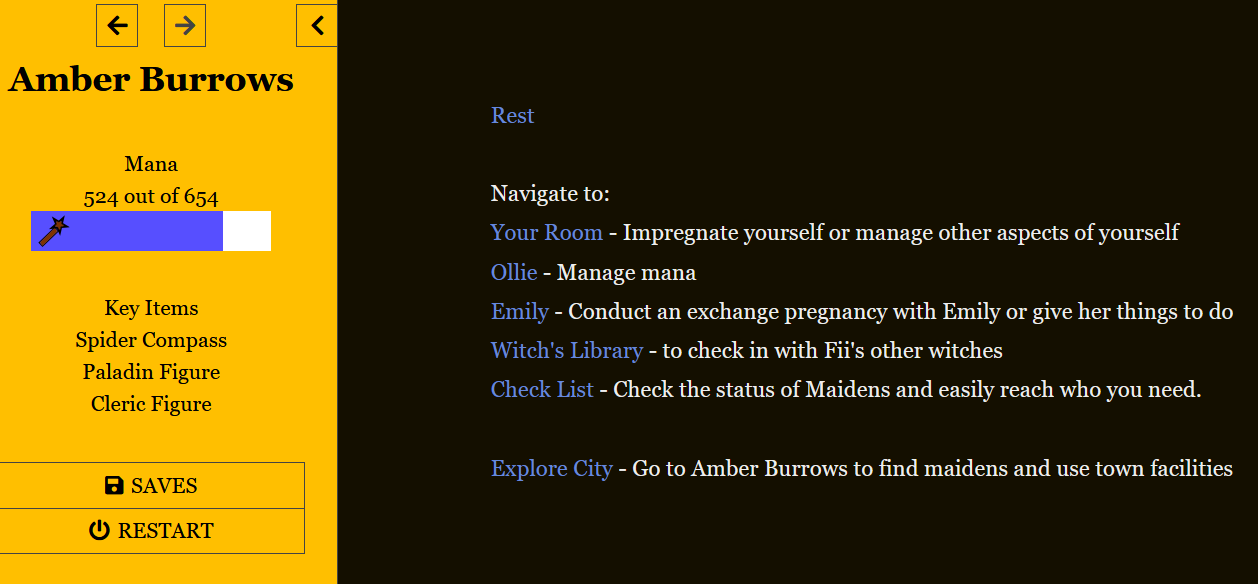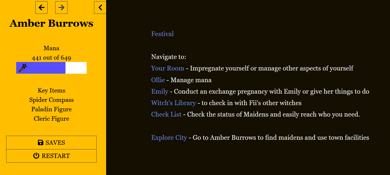 If everyone possible is pregnant this option instead becomes "Festival", which is how you continue. This Festival option will be here even if your mana is over maximum, allowing you to end the day above maximum mana.