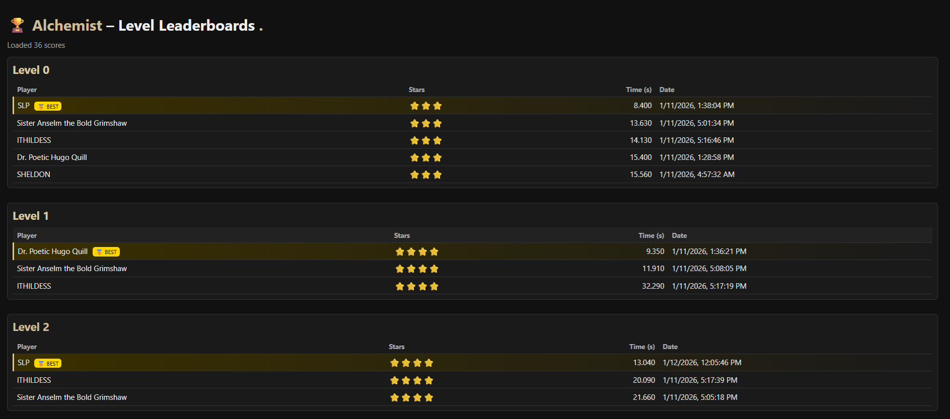 Thanks to ITHILDESS for playing several of the levels -- I look forward to seeing who can be your score on some of those levels. I'll be making a few more levels as this jam still has time, but other than that I regard this game as basically complete and ready to play!