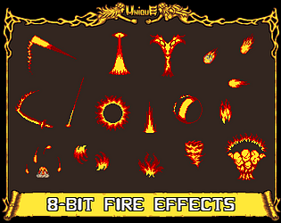 20 in total! 8-bit style Fire Magic spell effects, animated with 8 frames.