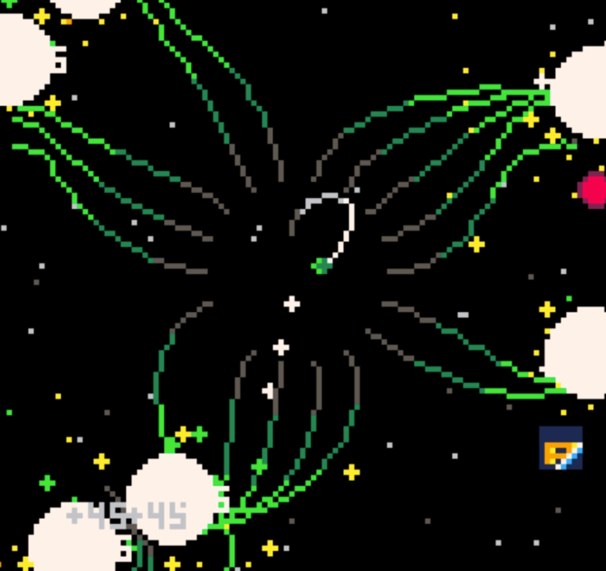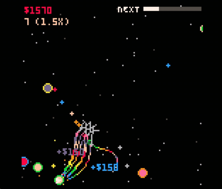Really love the overall aesthetic, you can't go wrong with cute slimes, magical princess wands, and adorable girly high school bubble letters hah. It was mentioned below, but I also appreciate the juxtaposition of the music against the cuteness of the sfx. Super satisfying triggering a chain reaction and hearing all those little popping sounds in tandem with the huge colourful explosions. Nice work!!
