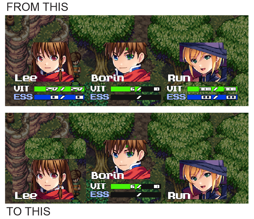 Hey! I'm using your plugin lite, and I'm about to buy the pro version 'cause I can't find anywhere how to do this. I'm developing a system where other party members are only support, not playable, so I need to hide their gauges and customize how they appear in battle individually. I see the lite version can't do this.